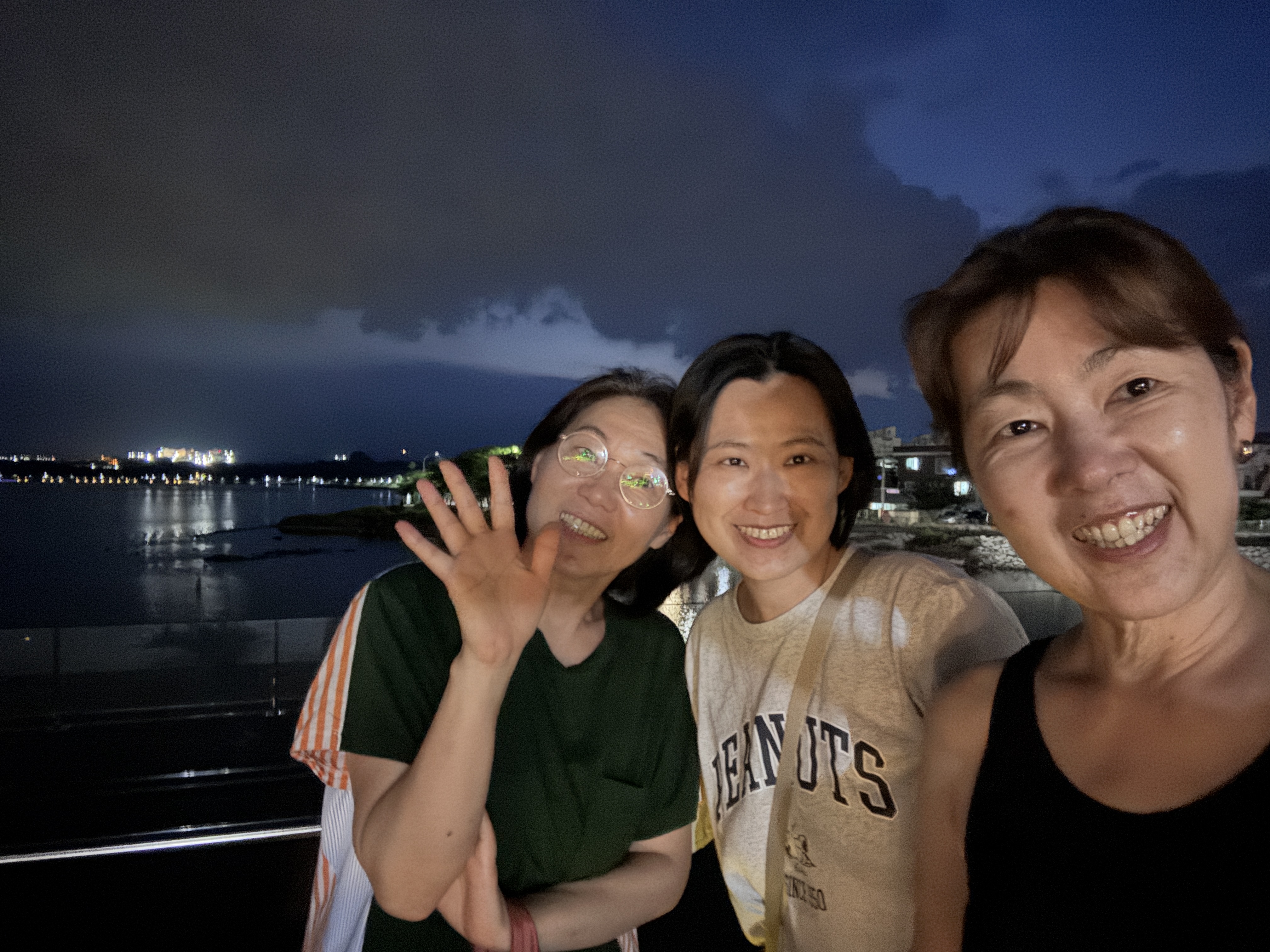 밤에 셋이서 영랑호 산책.